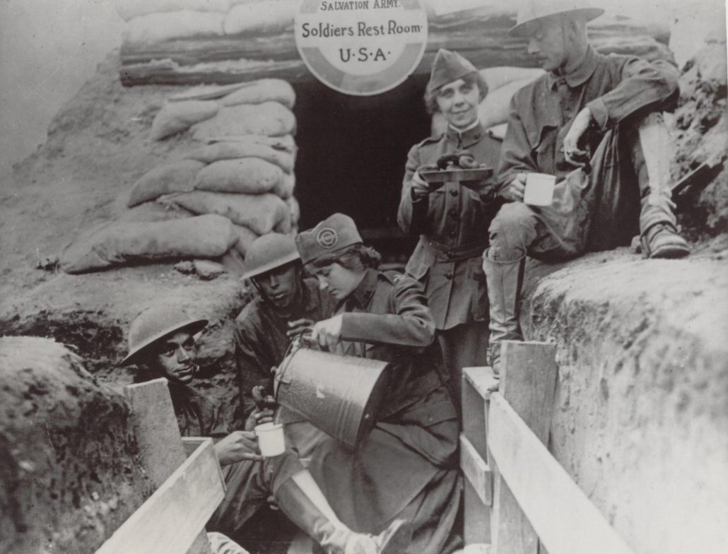 When America entered the hostilities in April 1917, Evangeline Booth (USA National Commander) placed the entire Salvation Army in the USA on a war-service basis.