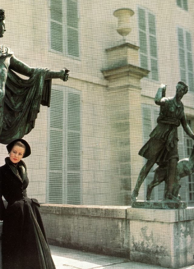 | Model is wearing gown and stole by Lanvin, Hôtel Soubise (now site of Musée de Archives), Paris, November 1946 |
