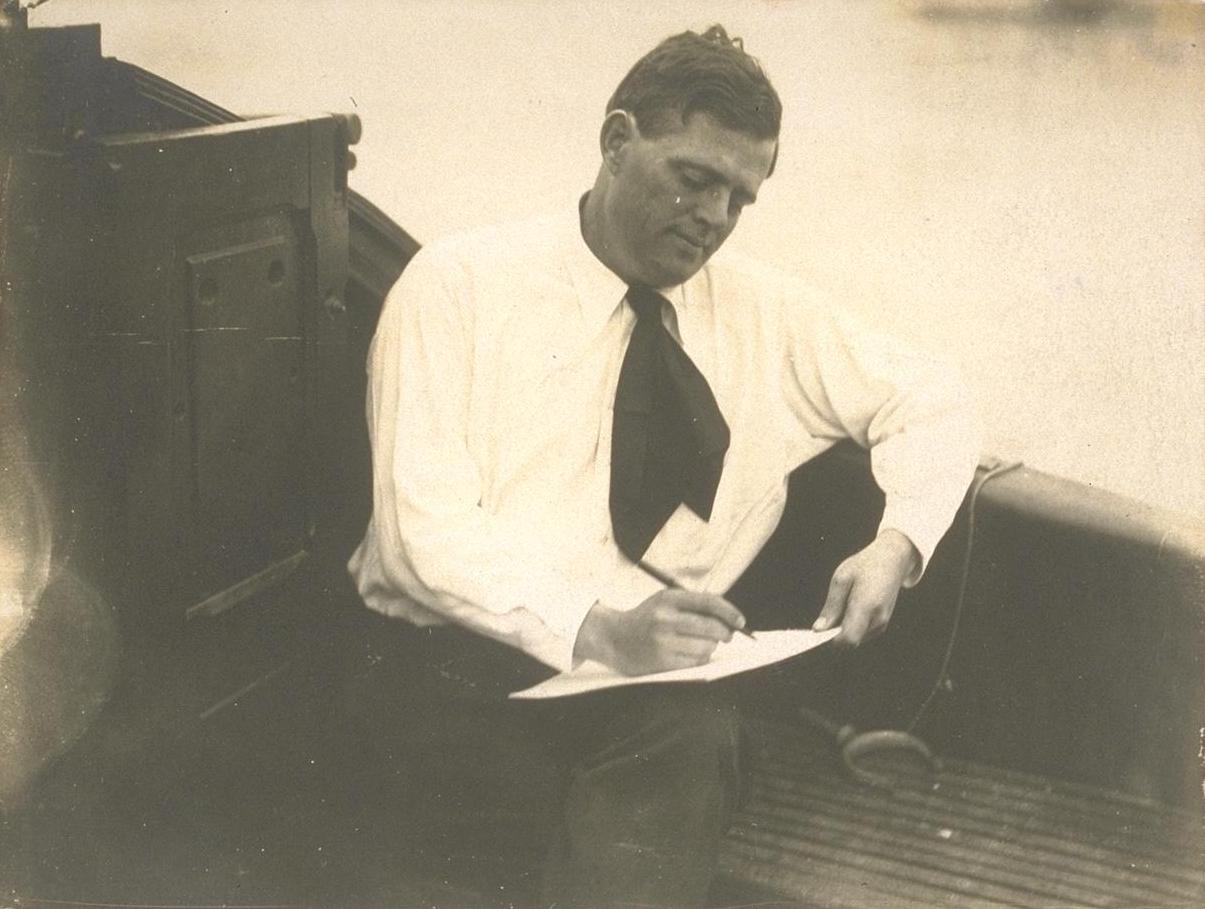 | Jack London on board ship. |