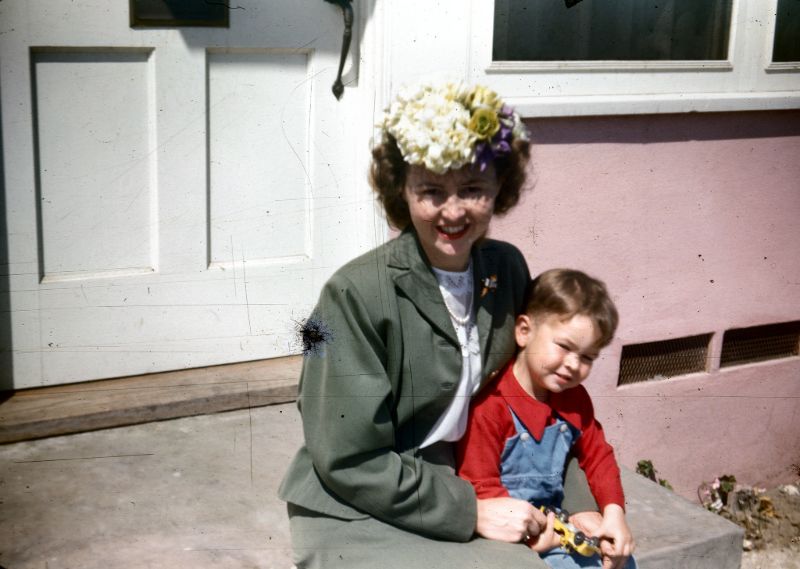 | Young woman in Easter fashion of 1947 at 9661 Lev Avenue, Los Angeles, CA, April 16, 1947 |