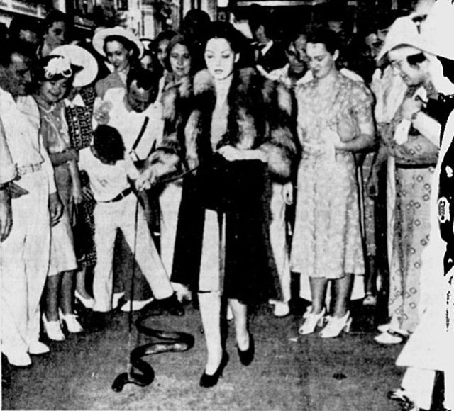 With her exotic fierce looks it is no wonder Zorita became popular, and adding the danger and eroticism of the snakes, the audiences just went wild. She used the movement of the snakes, named Elmer and Oscar, to emphasize her own. In her popular act “The Consummation of the Wedding of the Snake”, she stripped while holding an 8 foot boa constrictor.