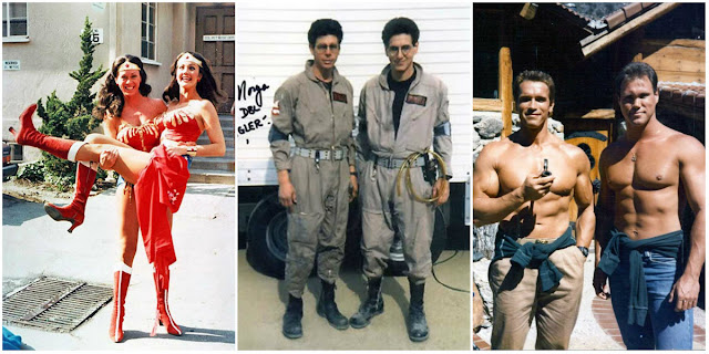 | Arnold Schwarzenegger with his stunt double Peter Kent on the set of The Terminator. |