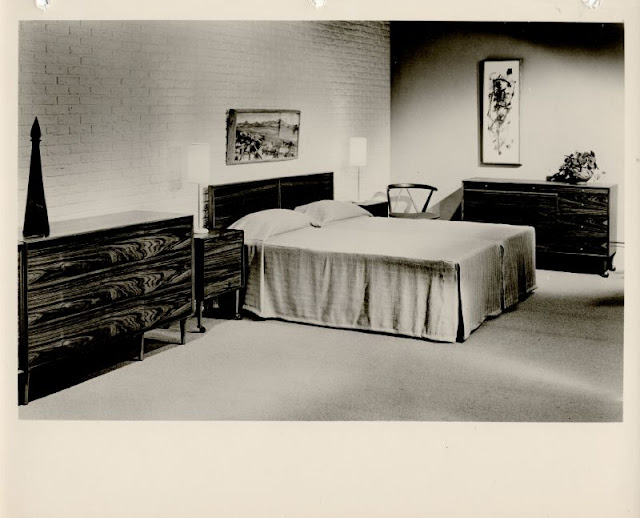 These vintage photos from Berge-Norman catalog scans that show furniture design in the early 1950s.