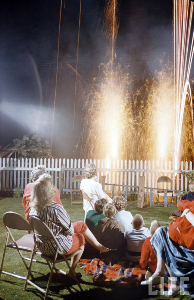 These wonderful color photographs were taken by LIFE photographer N.R. Farbman on the 4th of July, 1954. The location is an unknown town in America. All the classic Independence Day scenes are here: a family picnic, a parade complete with fire trucks, kids buying fireworks and holding sparklers, and smiles all around.