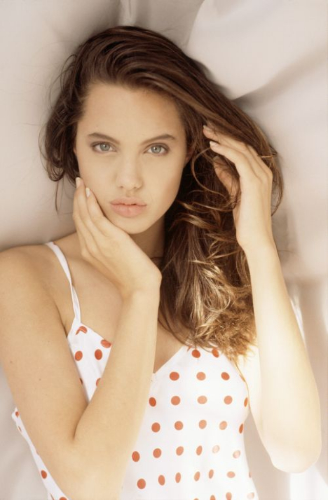A young Angelina Jolie in a photoshoot with photographer Michael Clement in 1991.