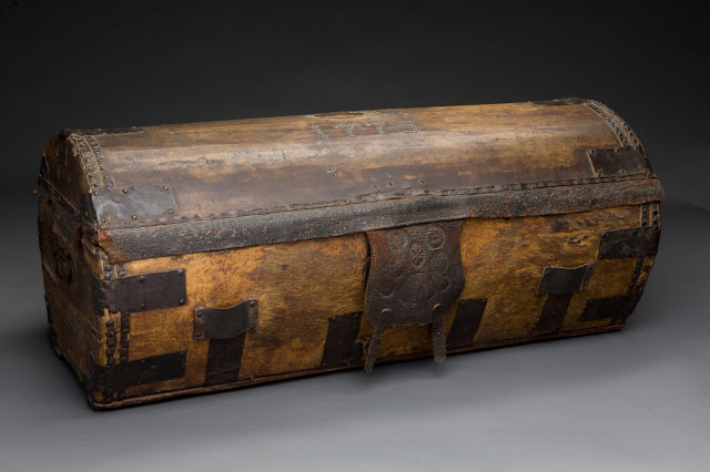 Throughout the Revolutionary War, the security of his official correspondence and orders was a perpetual concern for General George Washington. In the intervening weeks between the British evacuation of Boston and his departure to defend Manhattan, Washington obtained this traveling trunk to contain the increasing number of official papers in his possession.