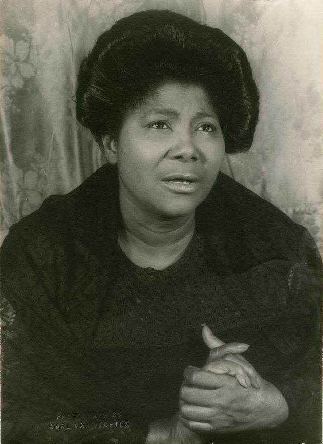 Jackson was heavily influenced by musician-composer Thomas Dorsey and blues singer Bessie Smith, adapting Smith’s style to traditional Protestant hymns and contemporary songs. After making an impression in Chicago churches, she was hired to sing at funerals, political rallies, and revivals. For 15 years, she functioned as what she termed a “fish and bread singer”, working odd jobs between performances to make a living.