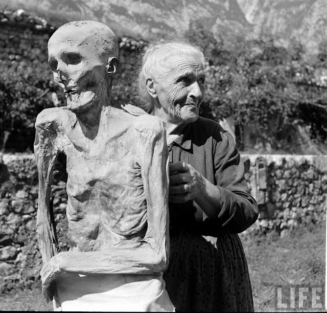 Candid Photographs Captured People Living a Normal Life With Mummies in Venzone, Italy in 1950