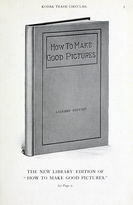 In 1898 Eastman Kodak published a guide book for amateur photographers - 'Picture Taking and Picture Making'. In 1905 this book was revised, and the contents of two other booklets ('Home Portraiture' and 'Amateur Portraiture by Flash Light') plus some other articles were added, to form a more comprehensive book - 'The Modern Way in Picture Making'. 'The Modern Way in Picture Making' remained in print, with a revised edition in 1907, until 1912, when it was replaced by 'How to Make Good Pictures'. This book remained in print until almost the end of the century, with a change of title in 1981 to 'How to Take Good Pictures'.