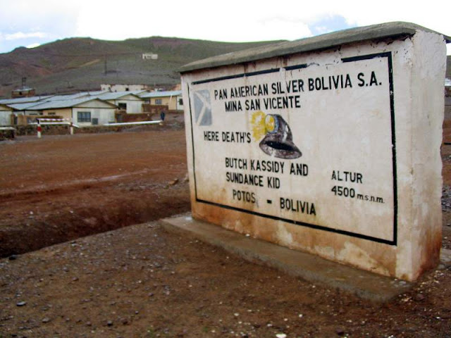 | A marker near San Vicente, Bolivia, which claims to be the final resting place of Butch Cassidy and the Sundance Kid. |