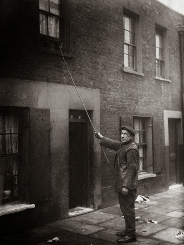 Knocker-uppers were essentially alarm clocks – they were hired to ensure that people would wake up on time for their own jobs. They would use sticks, clubs or pebbles to knock on clients’ windows and doors.
