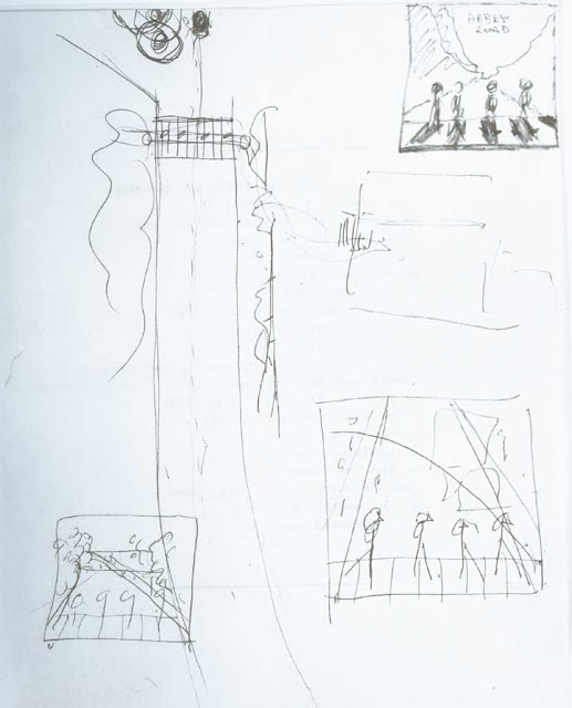 | The front cover design, a photograph of the group traversing a zebra crossing, was based on sketched ideas by McCartney. |